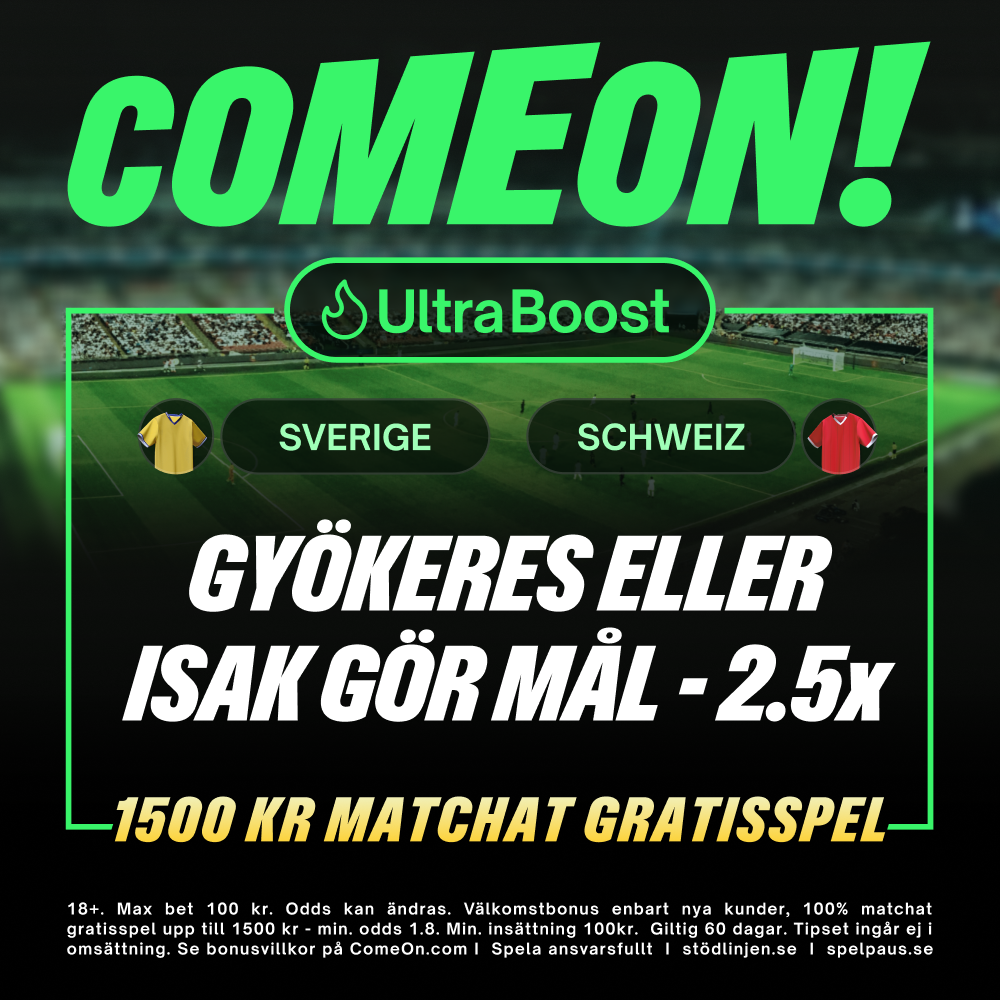 Sverige spelar mot Schweiz på fredag. I samarbete med Comeon.com har vi tagit fram ett bra erbjudande till matchen!